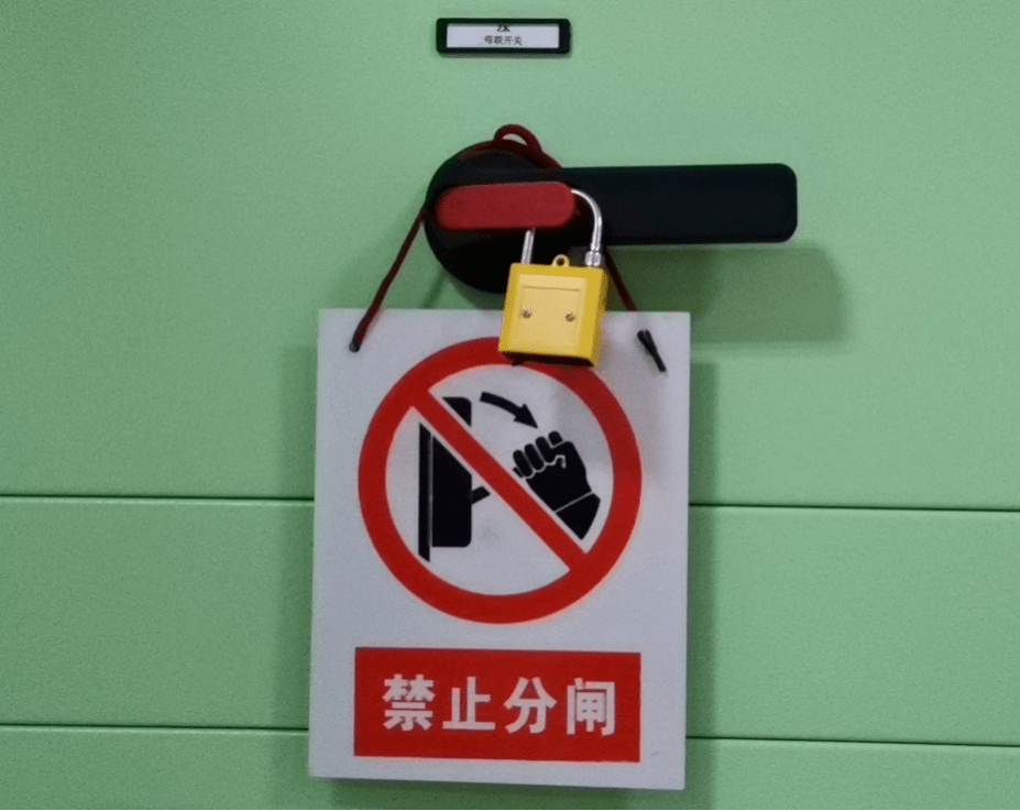 2. 兩段母線并列后,在合上的母聯開關把手上掛“禁止分閘!”標示牌,并在把手操作桿上加掛機械鎖。